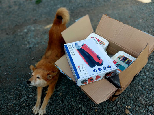 Eine weitere vorsichtige Frage lautete, ob wir wohl auch bei einer neuen Schermaschine für die langhaarigen Hunde helfen könnten. Die alte Maschine war kaputt gegangen und die Hunde leiden bei der Hitze von teilweise 38 Grad sehr unter ihrer dicken Wolle. Es sind so viele Hunde, die geschoren werden müssen, dass es unmöglich ist, sie in einen Hundesalon zu bringen. Zudem wären die Kosten dafür kolossal.